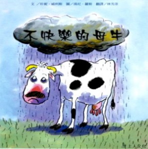 故事裡有隻母牛牠每天都唉聲嘆氣,不然就是看什麼都不不順眼,像是下雨天牠覺得煩躁,又覺得每天看見一成不變的風景很無聊,甚至連生日都不開心覺得自己老了一歲,但牠的好友小羊不想讓自己朋友不開心都會說,生日最開心還邀母牛跳舞,而若覺得風景不變,也能倒立看看,用不同角度看世界,但母牛每一次都還是依然不開心,但這不開心的負面情緒還是影響了小羊,最終小羊不想再見到母牛,而母牛開始想念小羊之前來找牠那笑咪咪的表情,主動去找小羊後,看見小羊不開心,反而換母牛安慰牠,最後牠們才明白因為是好朋友在意對方的感受,所以都開始保持笑容讓大家都開心,我覺得負面情緒確實會渲染給其牠人,所以一定要什麼都正向思考才能每天過的開心,別人看到自己也能保持愉悅呢!