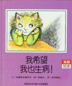 我希望我也生病這個故事當中,妹妹看到哥哥生病時有人餵食物、讀故事給哥哥聽‘而妹妹要練琴和曬衣服’所以他希望自己生病‘有一天妹妹真的生病了,妹妹生病時也和哥哥一模一樣’有人唸故事給妹妹聽、餵食物給妹妹吃‘但是我覺得生病的時後很痛苦。