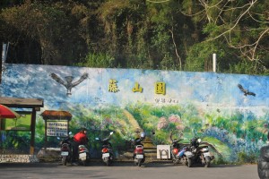在員南路的盡頭,可以看到一大塊空地,便是藤山園,這裡往往每到假日就會停滿非常的多車輛,車子沿著邊路一直停到山下去,這裡便是步道的入口,停好車,從右側斜坡上去,就是我們的藤山步道,而左側彎道歲上去步行5分鐘,即可看到大石碑,這裡就是臥龍步道的入口,兩條步道綠樹環繞,設施完善,終年如蔭,兩旁種植了很多相思樹,山谷可見油桐花,景色相當優美。